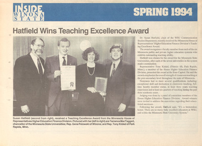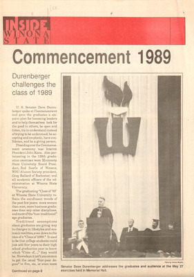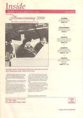 This publication, produced by the WSU Office of University Relations and Development was distributed free to WSU Alumnininini, enrolled students and their families, and friends of Winona State University. The format changed from a magazine to newspaper with this issue.