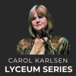 On November 12, 1992, Dr. Carol Karlsen was a speaker for the Winona State University (WSU) Lyceum Speaker Series. Karlsen's presentation was titled The Devil in the Shape of a Woman: Women in New England Witchcraft, The title of her book is The Devil in the Shape of a Woman: Witchcraft in Colonial New England (1987).