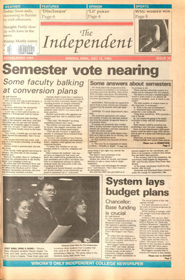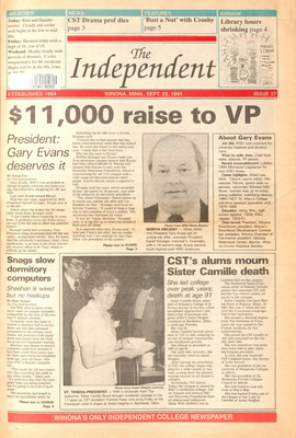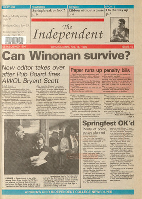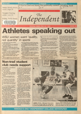 The Independent newspaper was Winona, Minnesota's only independent college newspaper. The Independent collection includes newspapers published from 1994-1995.