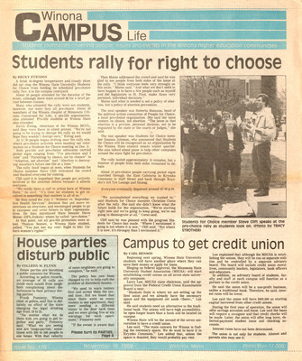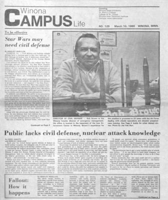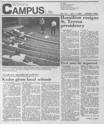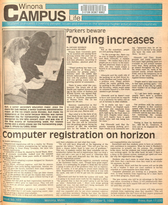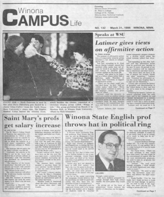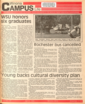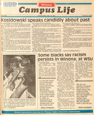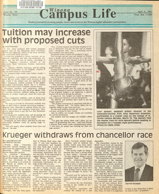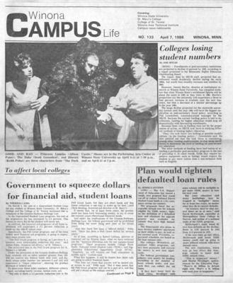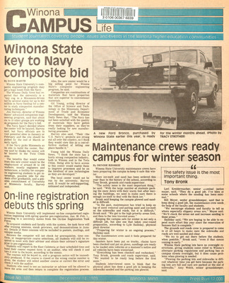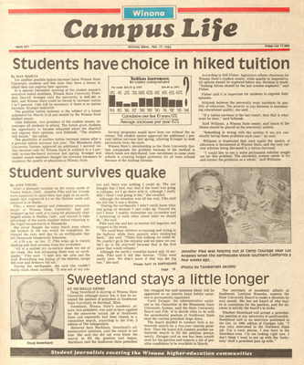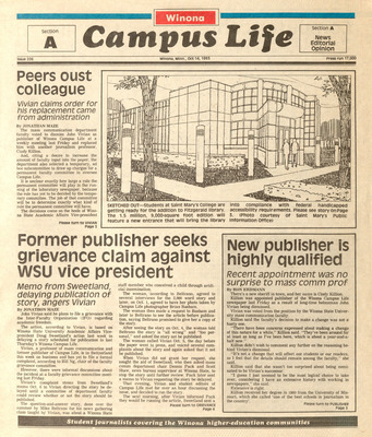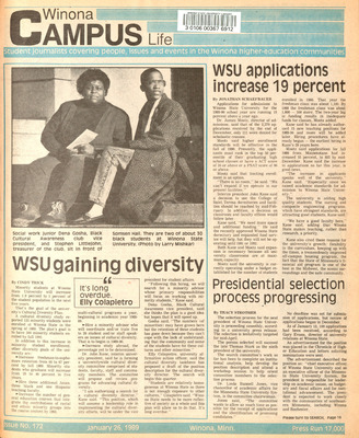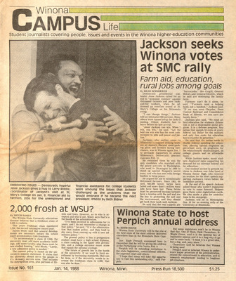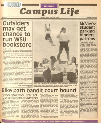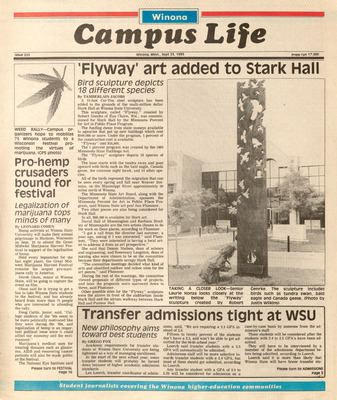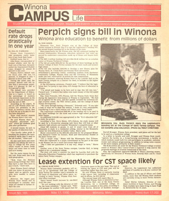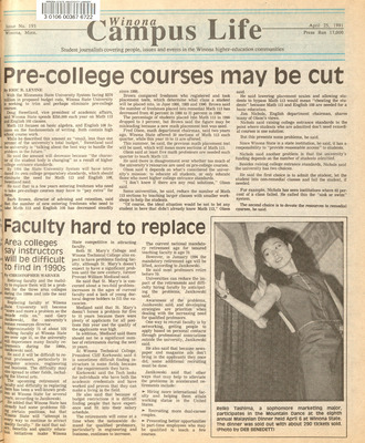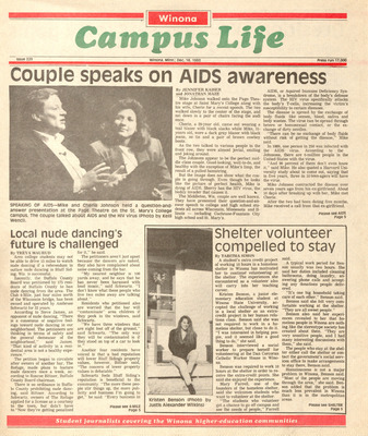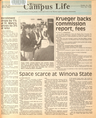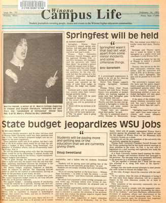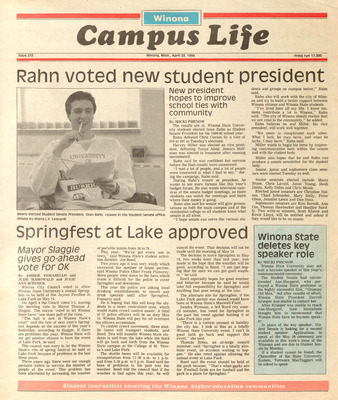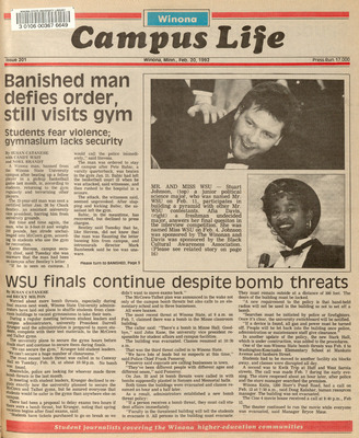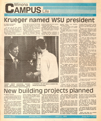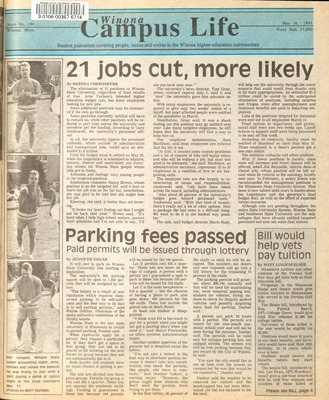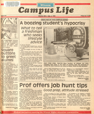 Winona Campus Life was a weekly laboratory newspaper produced by the WSU Mass Communication Department students and printed as a supplement to the Sunday Winona Daily News, which began in September 1983. The newspaper provided coverage of the four institutions of higher education in Winona: Winona State University, St. Mary's University, College of Saint Teresa, and Winona Area Vocational-Technical School.