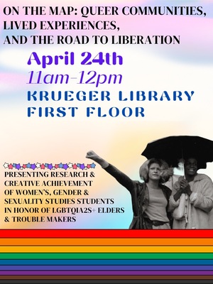 During this research event, students will create a living community archive to provide a space to listen and learn about liberation, collective care, and connect the past and present. We invite you to explore our research and conversation with LGBTQ+ elders, organizers, and troublemakers who will be interviewed by student scholars on the first floor of the Krueger Library to continue expanding our understanding of the Greater Minnesota Two-Spirit and LGBTQIA+ History Map.