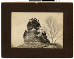 Winona State Normal School students and Phelps School students on top of Soldier's Cap rock formation near Winona, Minnesota.