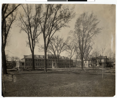 Fall view of the outside of Morey Hall and West Lodge.