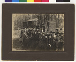 Botany and elementry science class field trip at Holzinger's cottage south of Lake Winona. John Holzinger taught the class.