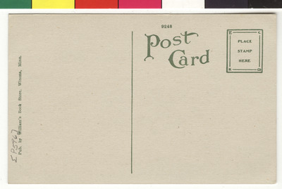 The back of postcard MHS01769. The printed text is: Pub. by William's Book Store, Winona, Minn.